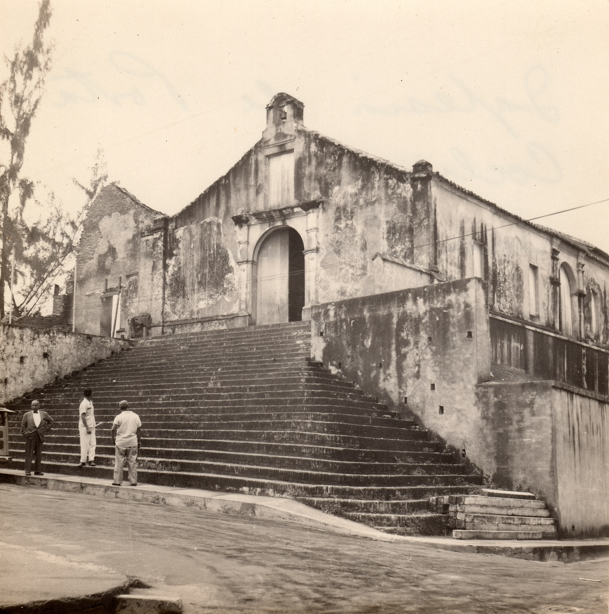Fotografía de la Iglesia Porta Coeli en San Germán, Puerto Rico alrededor de 1955 tomada por el arquitecto argentino Mario J. Buschiazzo (1902-1970). Esta es una de varias fotografías que acompañan el trabajo preparado por Buschiazzo en 1955 titulado “Los monumentos históricos de Puerto Rico”.