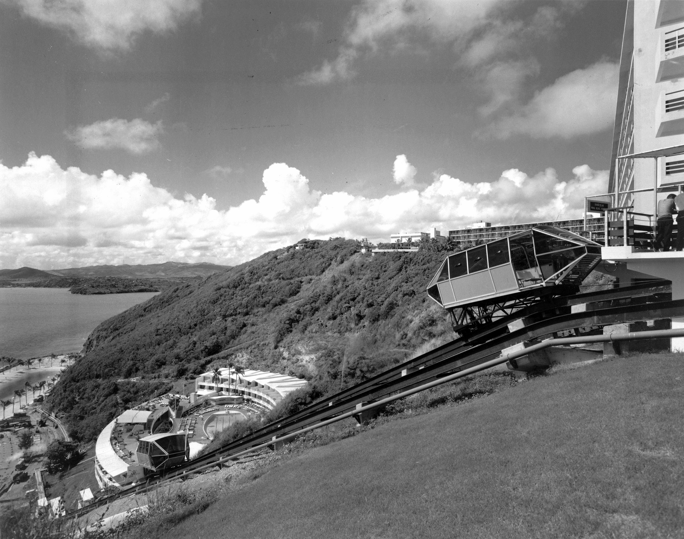 Foto del funicular en El Conquistador Hotel and Club en Fajardo, Puerto Rico tomada circa 1969. Forma parte de la colección de Fotos del Periódico El Mundo de la Biblioteca Digital Puertorriqueña de la Universidad de Puerto Rico, Recinto de Río Piedras.
