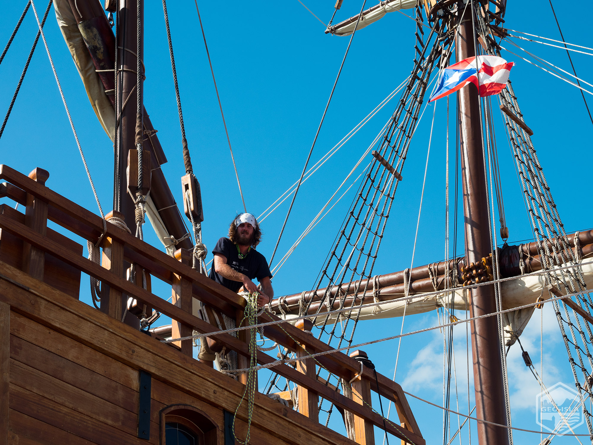 Días de navegación que han pasado haciendo sus turnos de guardias, aprendiendo las maniobras de sus velas, el gobierno de una réplica histórica tan singular, haciendo las labores de mantenimiento de sus jarcias y maderas, pescando cuando la mar lo permitía y en sus ratos de ocio, disfrutando de esta excepcional experiencia que ahora culminan en aguas del Caribe.