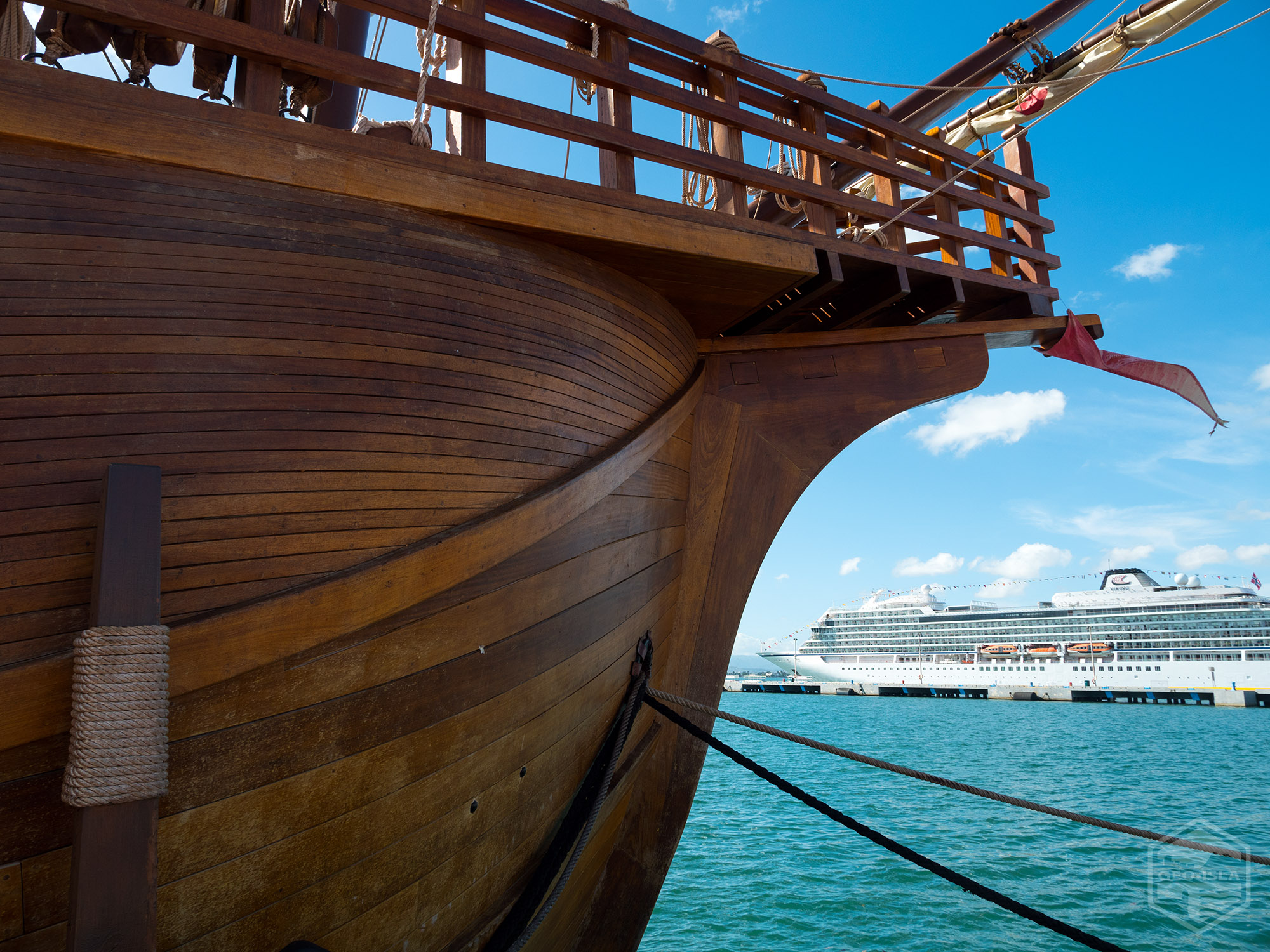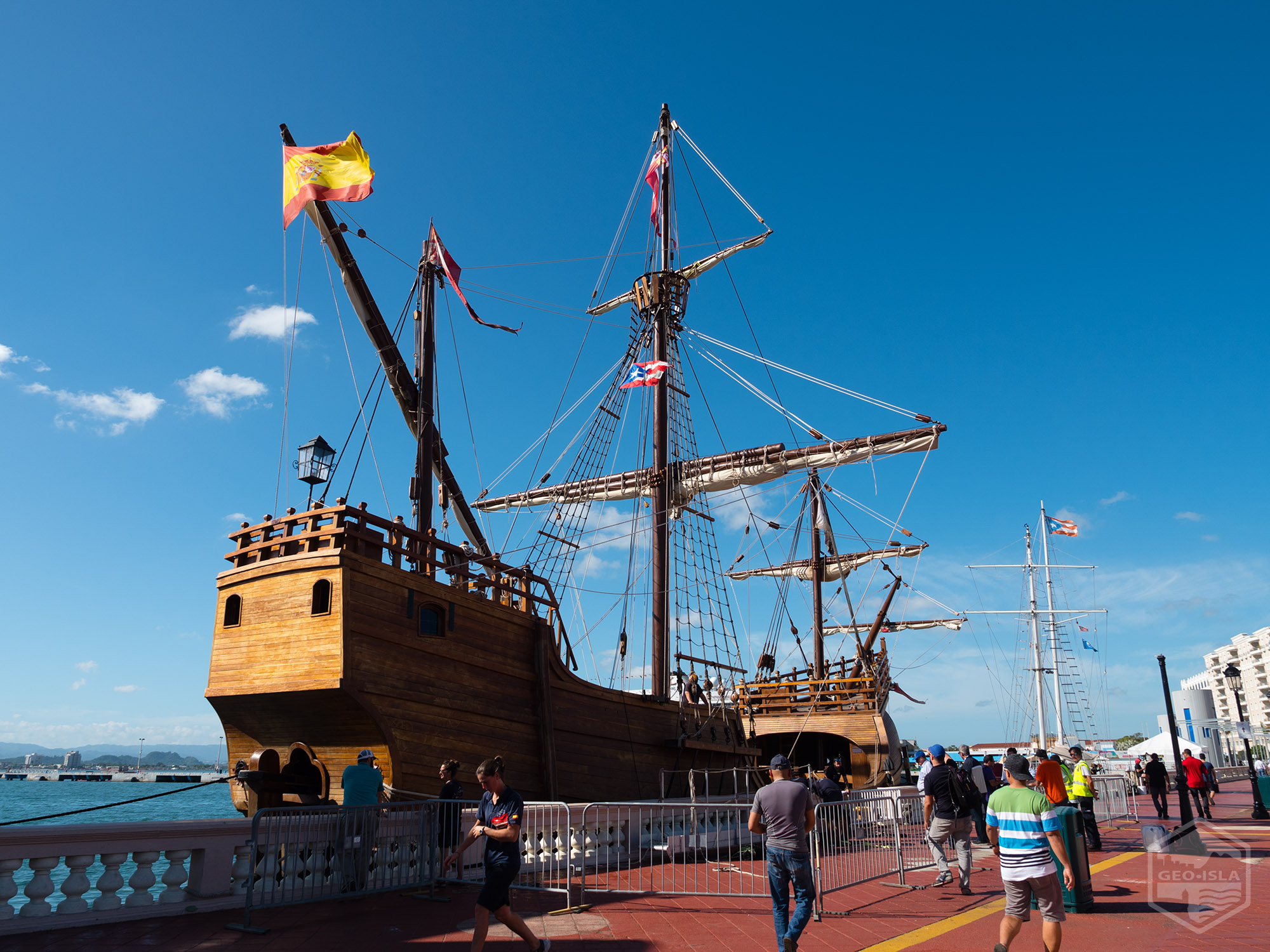 La Nao Santa María atracada entre los muelles 3 y 4 en el Viejo San Juan. Fotos cortesía de Rafael Marrero / GeoIsla.