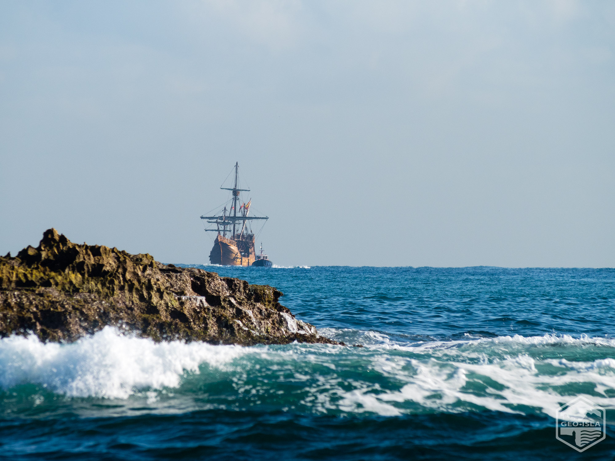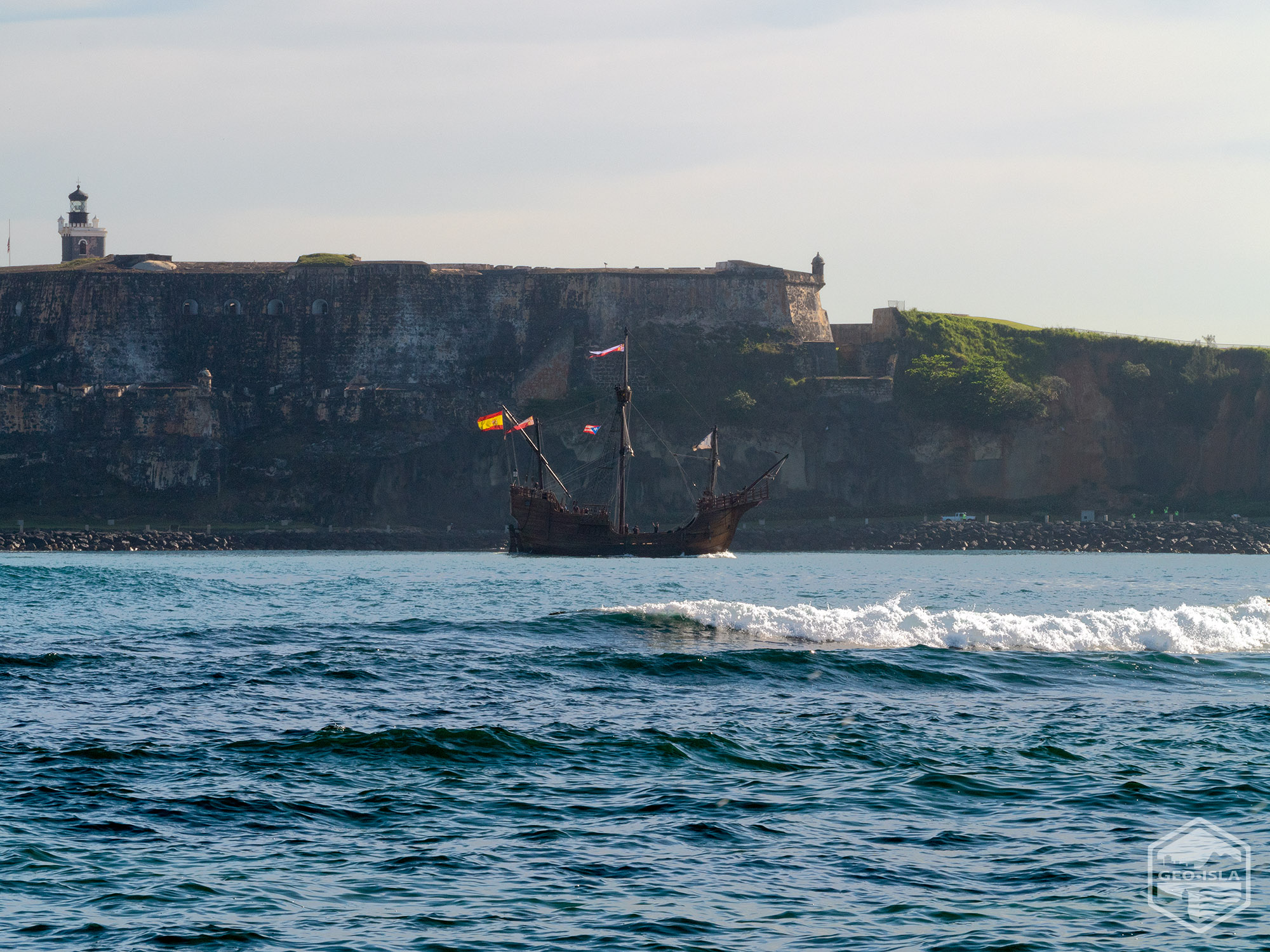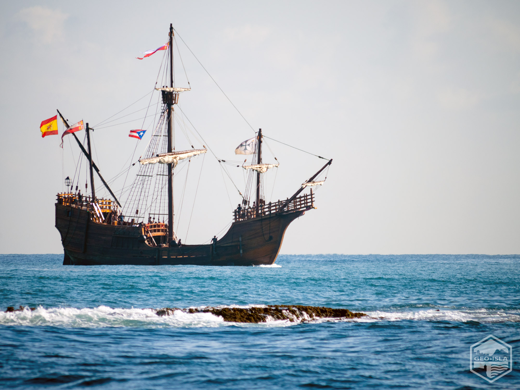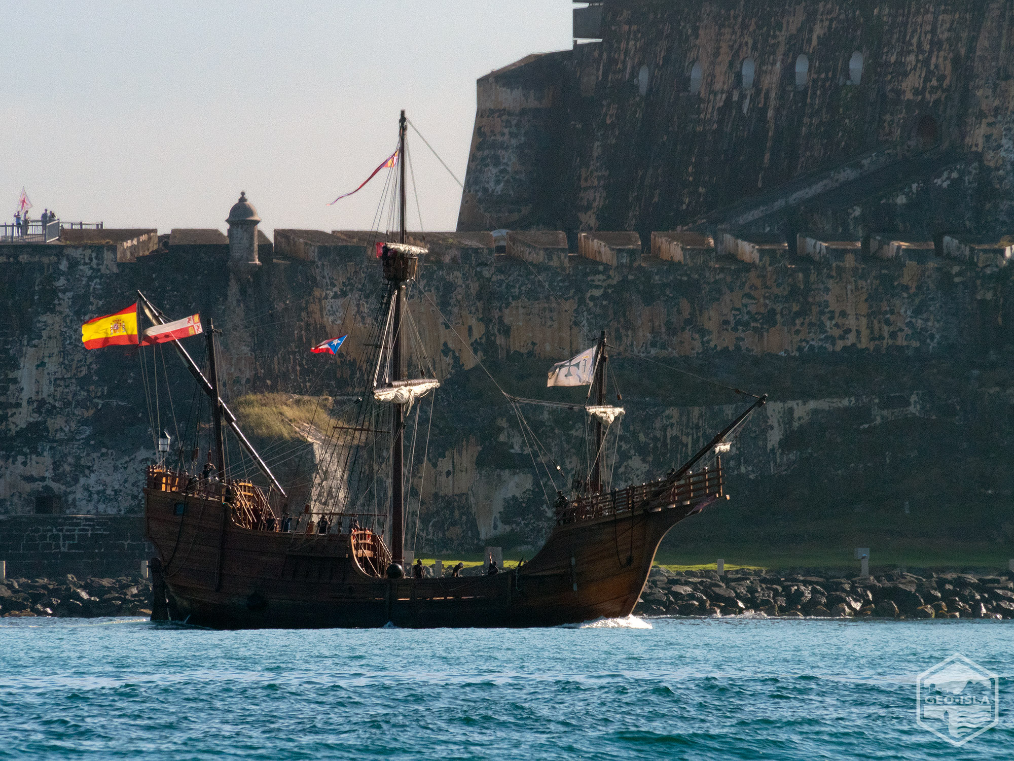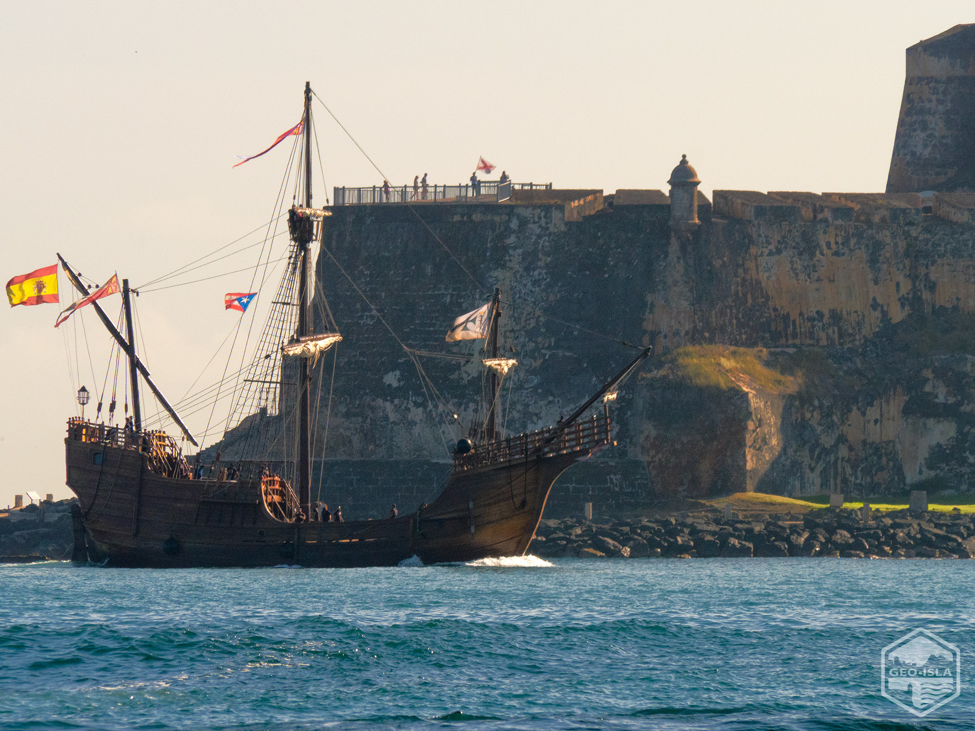 Entrada de la Nao Santa María a la bahía de San Juan, fotografiada desde la Isla de Cabras. Fotos cortesía de Rafael Marrero / GeoIsla.