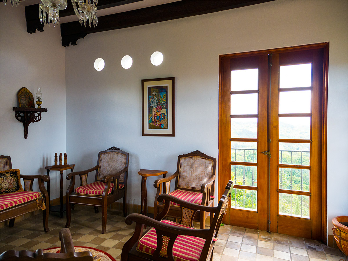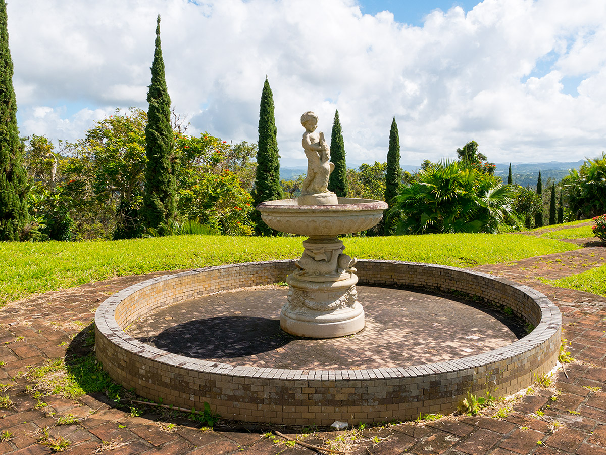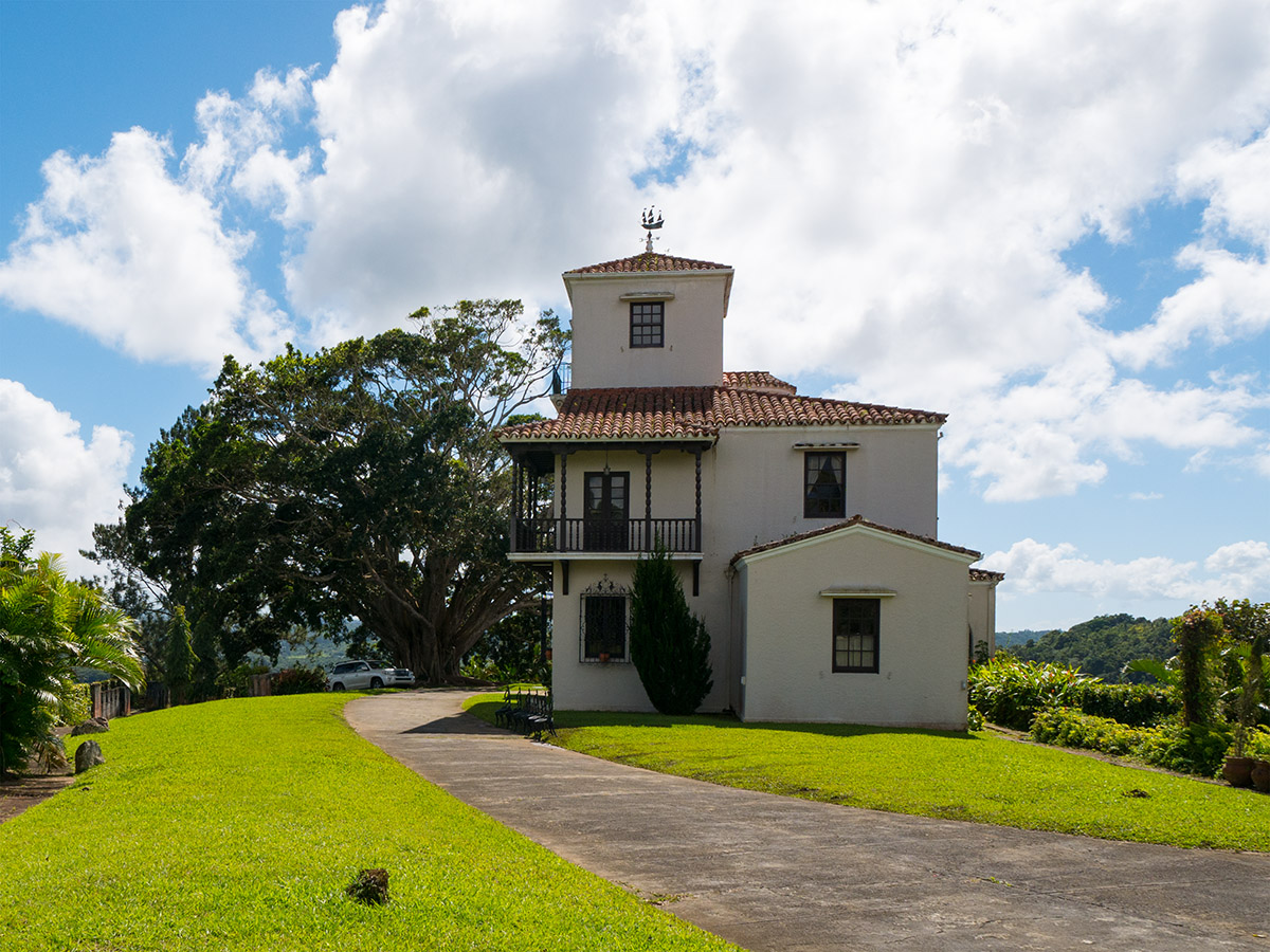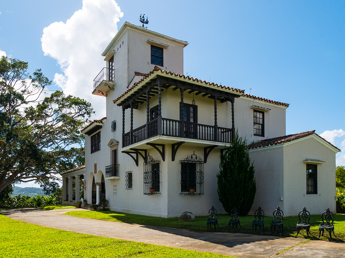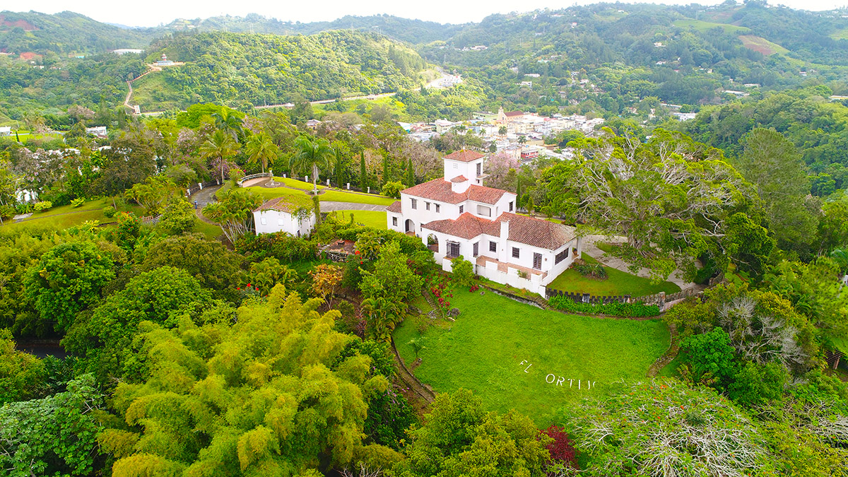 El Cortijo was the name given to the summer residence of the Lozana-Fabián family, built in 1939 by Rafael Carmoega Morales (1894-1968), a Cornell-educated Puerto Rican architect who was in charge of important works on the island during his tenure as State Architect (1921-36), such as the University of Puerto Rico Quadrangle, the School of Tropical Medicine, as well as several other important projects of the time. El Cortijo was designed in the Spanish Colonial Revival Style. It is located on State Road PR-162, km. 18.5 in the Pueblo Ward of the Municipality of Barranquitas, on a plot of land measuring 3.19 cuerdas (Spanish acres), equivalent to 12,537.94 square meters.1 It consists of three main structures—a single-family residence and two outbuildings: a garage, and a gardener’s cottage. There is also a water cistern and a system of paths that runs through formal and informal gardens that connect spaces for recreation and contemplation throughout the site.