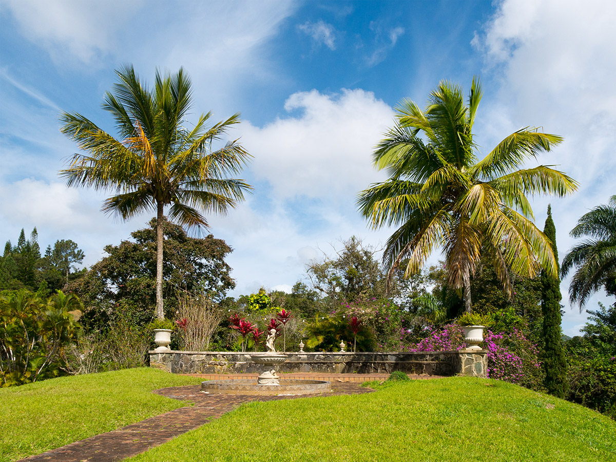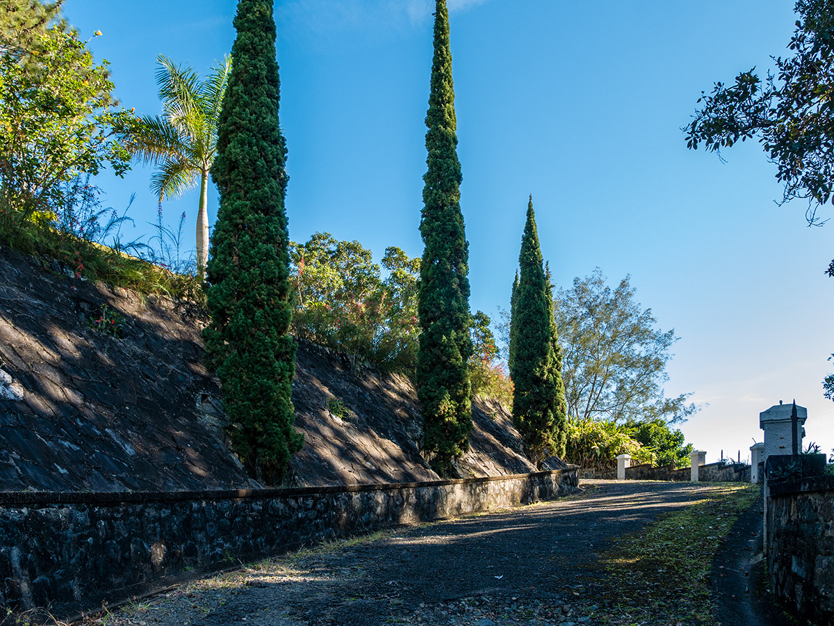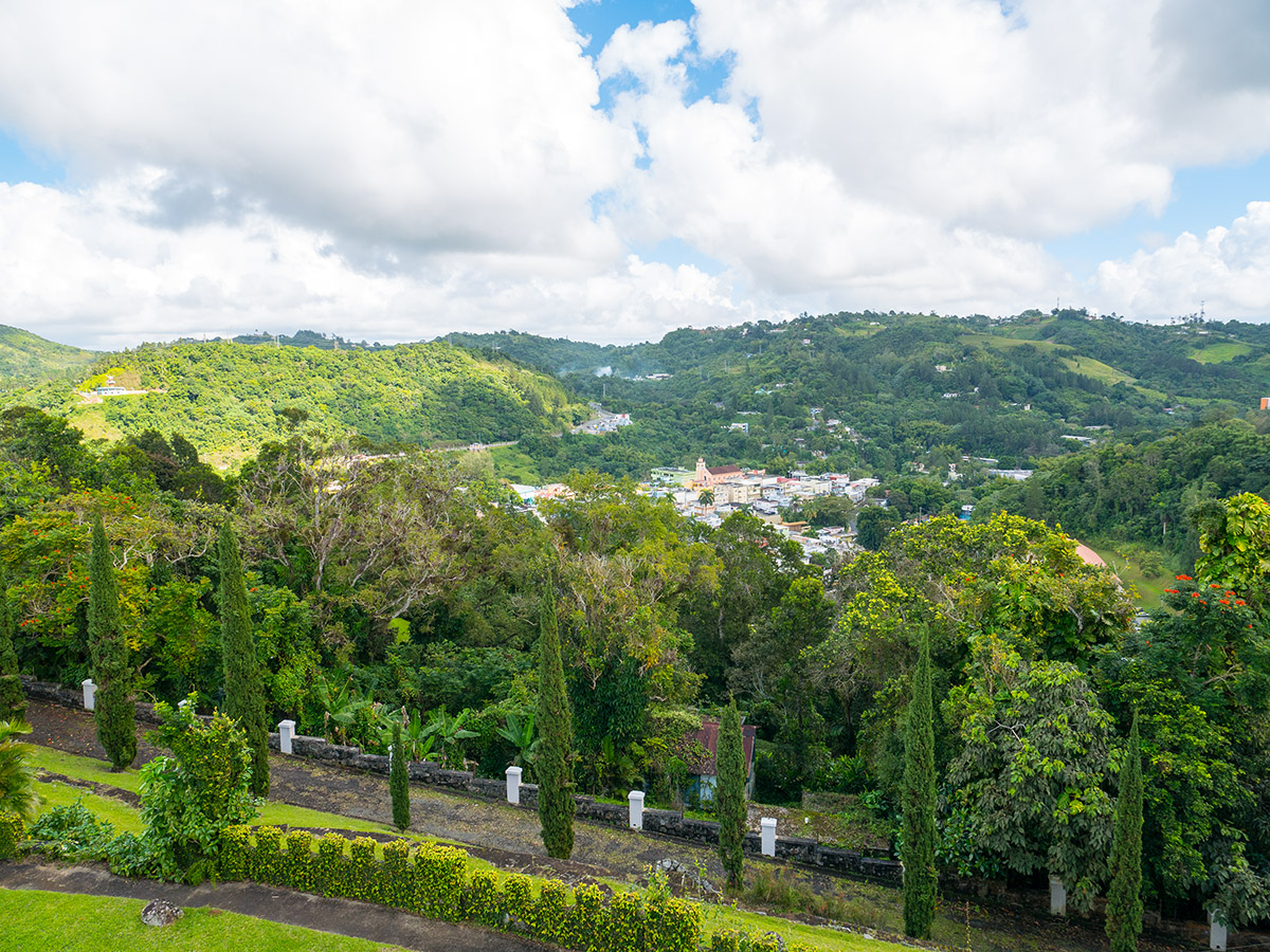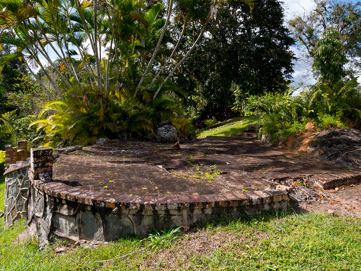 El Cortijo was the name given to the summer residence of the Lozana-Fabián family, built in 1939 by Rafael Carmoega Morales (1894-1968), a Cornell-educated Puerto Rican architect who was in charge of important works on the island during his tenure as State Architect (1921-36), such as the University of Puerto Rico Quadrangle, the School of Tropical Medicine, as well as several other important projects of the time. El Cortijo was designed in the Spanish Colonial Revival Style. It is located on State Road PR-162, km. 18.5 in the Pueblo Ward of the Municipality of Barranquitas, on a plot of land measuring 3.19 cuerdas (Spanish acres), equivalent to 12,537.94 square meters.1 It consists of three main structures—a single-family residence and two outbuildings: a garage, and a gardener’s cottage. There is also a water cistern and a system of paths that runs through formal and informal gardens that connect spaces for recreation and contemplation throughout the site.