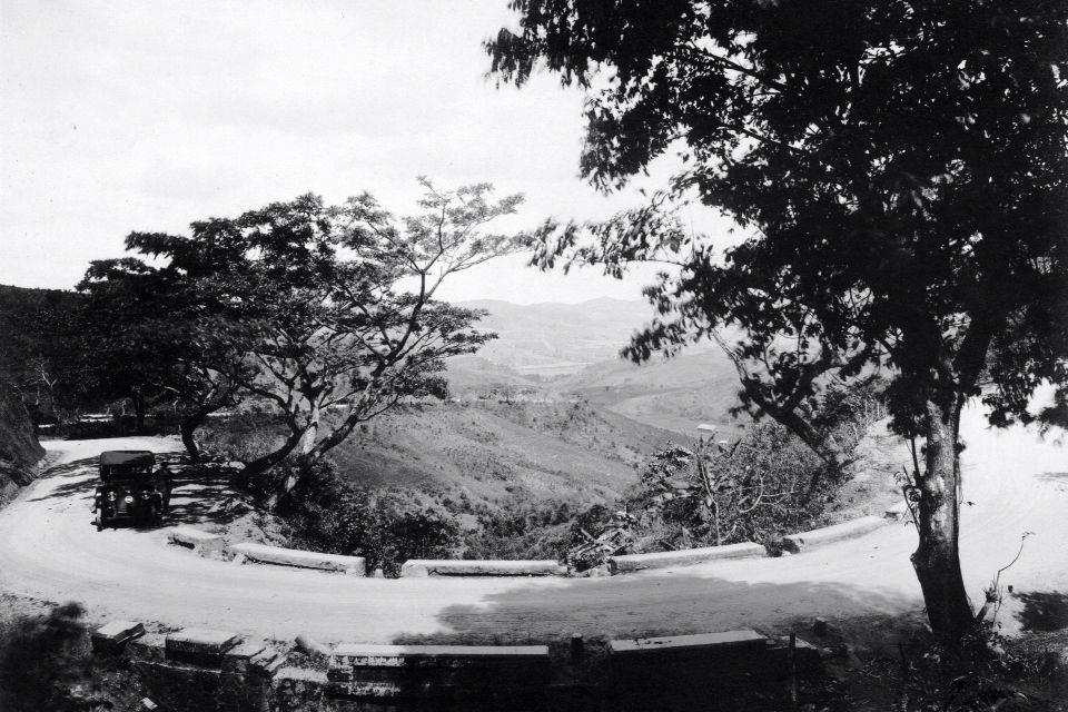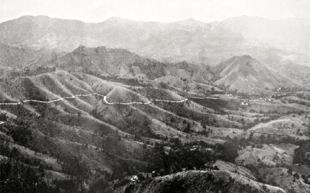 The Carretera Central, with its historic course built between 1846 and 1886, is a stretch of asphalted road of one hundred and thirty-four (134.7) kilometers in length that crosses Puerto Rico in a winding north to south direction connecting the island’s northern capital, San Juan, to the southern city of Ponce. Also known as the Military Road, the 19th century engineering marvel runs from the coastal plains of the Atlantic Ocean to the coastal plains of the Caribbean Sea, cutting its way throughout some of the most challenging terrain, topographically and scenery wise, in the high mountains of the Cordillera Central. Along its path, the Carretera Central connects San Juan, the town of Río Piedras,1 the municipalities of Caguas, Cayey, Aibonito, Coamo, Juana Díaz and Ponce (Fig. 1). The Carretera Central, a linear district, is composed of several contributing resources, among these, the road itself, bridges, historic sewers, and casillas de camineros.